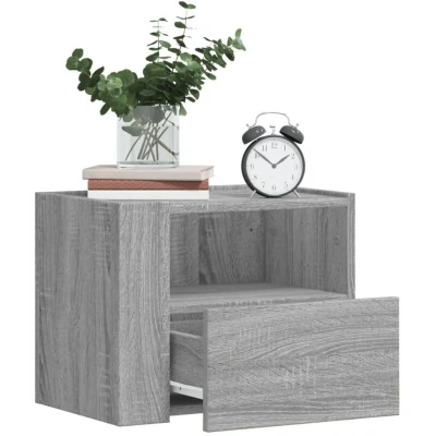 ManoManoGeneral description With a stylish design, these wall-mounted bedside cabinets fit easily into your bedroom or living room and add a timeless charm to your interior. The engineered wood is of exceptional quality with a smooth surface, providing strength, stability, and resistance to moisture. The cabinets feature a convenient drawer, helping keep your essentials close at hand, and are easy to clean to maintain their appearance. Technical specifications Colour: Grey sonoma Material: Engineered wood Dimensions: 45 x 30 x 35 cm (L x W x H) Maximum load capacity (total): 50 kg Maximum load capacity (drawer): 5 kg Maximum load capacity (top layer): 30 kg Maximum load capacity (laminate): 20 kg Assembly required: Yes Delivery contains: 2 x Wall-mounted bedside cabinet Installation Screws and plugs for inside the wall are not included. It is advised to find and use screws and plugs suitable specifically for your walls. If unsure, consult with a professional. Please read and follow each step