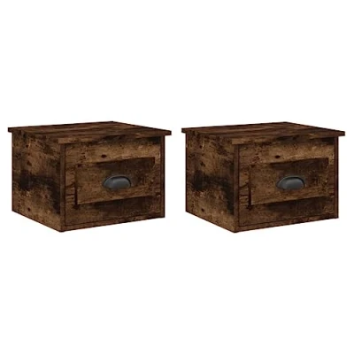 ManoManoGeneral description These wall-mounted bedside cabinets with an elegant design make a timeless addition to your interior decor. The floating bedside cabinet is designed with a drawer to keep things organized and within easy reach, while the wall-mounted function ensures they don't take up any floor space. Technical specifications Colour: Smoked oak Material: Engineered wood Dimensions: 41.5 x 36 x 28 cm (W x D x H) Delivery contains: 2 x Bedside cabinet SKU: 816387 Installation To make assembly as easy as possible, each product is delivered with a manual. Screws and plugs for inside the wall are not included; it is advised to find and use screws and plugs suitable specifically for your walls. If you're not sure, you can consult with a professional. Please read and follow each step of the instructions. Other information