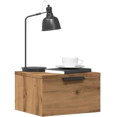 ManoManoGeneral description These wall-mounted bedside cabinets are an ideal solution for maximizing space in your living area while keeping the floor clean. Their floating design allows for additional storage without taking up valuable floor space. Technical specifications Colour: Artisan oak Material: Engineered wood Dimensions (each): 34 x 30 x 20 cm (W x D x H) Max. weight capacity (total): 60 kg Assembly required: Yes Delivery contains: 2 x Wall-mounted bedside cabinet Installation Screws and plugs for wall mounting are not included. It is recommended to use screws and plugs suitable for your specific wall type. If unsure, consult with a professional for installation guidance. Follow the provided instructions carefully during assembly. Usage The floating bedside cabinets offer ample storage for magazines, books, glasses, and other bedtime essentials, keeping them organized and easily accessible. The sturdy top surface is perfect for placing table lamps, alarm clocks, books, picture