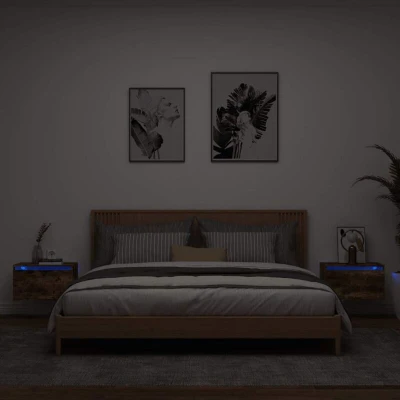 vidaXL Wall mounted Bedside Cabinets with LED Lights 2 pcs Smoked Oak