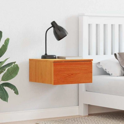 ManoManoGeneral description This bedside table showcases a traditional design that blends classic elements with practicality. Its neat rectangular shape fits seamlessly into various bedroom styles, creating a calm personal space while providing easy access to essentials like an alarm clock or a good book. Technical specifications Material: Solid pine wood Colour: Wax brown Overall dimensions: 37 x 35 x 18.5 cm (L x W x H) With drawer Assembly required: Yes SKU: 873486 EAN: 8721288722522 Compatibility and accessories Mounting type: Wall-mounted Installation Simple mounting instructions included for securing to a wall. Usage Ideal for placing next to your bed for easy access to lamps, alarm clocks, and personal items. Easy to maintain by wiping down with a damp cloth. Other information