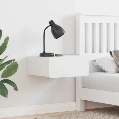ManoManoGeneral description This classic bedside table is a lovely addition to any bedroom, acting as a great focal point. It’s designed to be wall-mounted, which helps save floor space while keeping a neat look. The textured surface catches the eye, fitting in perfectly with traditional decor and creating a warm atmosphere. It's ideal for storing personal items and holding bedside essentials like a lamp or clock, adding both practicality and style. Technical specifications Colour: White Material: Solid pine wood Overall dimensions: 39 x 34 x 16.5 cm (L x W x H) With 2 Drawers Mounting type: Wall-mounted Assembly required: Yes EAN: 8721288722683 SKU: 873502 Brand: vidaXL Included Components This bedside table comes with a useful drawer and compartment, perfect for quickly tidying away your nighttime essentials. The drawer blends right into the design, making access easy while keeping things in order. These features help keep your sleeping area neat and improve your storage options. Features /