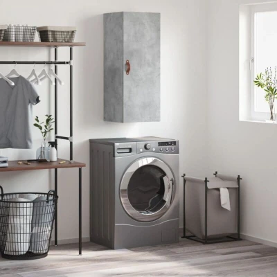 ManoManoGeneral description This wall-mounted cabinet features an elegant design, making it a timeless addition to your interior decor. It is constructed from high-quality engineered wood, ensuring durability and resistance to moisture. The cabinet offers ample storage space for organizing daily essentials while keeping them free from dust behind its door. Technical specifications Colour: Concrete grey Material: Engineered wood Dimensions: 34.5 x 34 x 90 cm (W x D x H) Assembly required: Yes Installation Screws and plugs for wall mounting are not included; it is advised to use screws and plugs suitable for your specific wall type. Consult a professional if unsure about installation. Follow each step of the provided instructions carefully. Usage This versatile cabinet can be hung on the wall to save floor space or placed on top of a sideboard to create a highboard, providing extra storage in various living spaces such as the living room, bedroom, or study. Other information