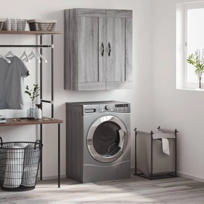 ManoManoGeneral description This wall mounted cabinet with an elegant design makes a timeless addition to your interior decor. The engineered wood is of exceptional quality with a smooth surface, providing strength, stability, and resistance to moisture. It features 3 compartments with 2 doors, offering ample storage space for keeping your daily essentials well organized. This hanging cabinet doesn't take up any floor space and can be easily mounted on the wall. The stylish black aluminium alloy door handles enhance the cabinet's attractiveness. Additionally, it can be placed on top of a sideboard to create a highboard, making it versatile for various living spaces such as the living room, bedroom, or study. Technical specifications Colour: Grey sonoma Material: Engineered wood, aluminium alloy Dimensions: 69.5 x 34 x 90 cm (W x D x H) Assembly required: Yes Installation Screws and plugs for inside the wall are not included. It is advised to use screws and plugs suitable specifically for your