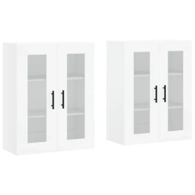 vidaXL Wall Mounted Cabinets 2 pcs, Engineered Wood Construction, White Living Room Storage Units with Glass Doors