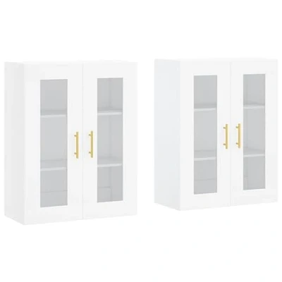 vidaXL Wall Mounted Cabinets, 2 Pcs Engineered Wood With Glass Door White Ideal for Living Room Storage and Home Organization