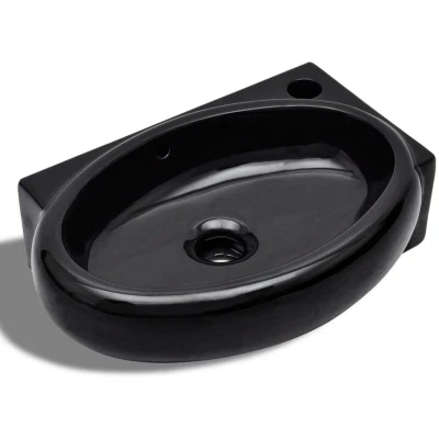 vidaXL Wall Mounted Ceramic Bathroom Sink Basin with Faucet and Overflow Hole Black Round Elegance for Washrooms Powder Rooms