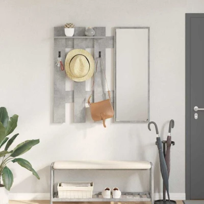 ManoManoGeneral description This wall-mounted coat rack in concrete grey combines modern style with practical storage solutions. Its sleek design makes it a fantastic addition to any hallway or entryway, providing a stylish spot to hang coats while keeping your space organized. The minimalist aesthetic fits beautifully in contemporary interiors, ensuring functionality without compromising on style. Technical specifications Colour: Concrete grey Material: Engineered wood Overall dimensions: 100 x 10 x 100 cm (L x W x H) Weight: 15 kg Indoor use only Included Components 1 x Wall-mounted coat rack Smart mounting points for secure wall fixing Compartments and shelves for organization Wall fixtures not included (specific screws or wall plugs) Care & Maintenance Wipe with a damp cloth to remove dust Avoid harsh chemicals to maintain its condition Regular care will help it last for years Other information