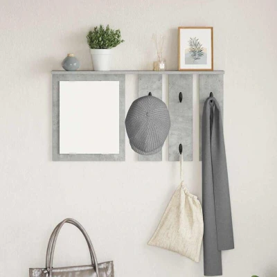 ManoManoGeneral description This hallway storage rack skillfully mixes function with modern style. It’s ideal for entryways, providing a solid way to hang up coats and organize accessories. With its clean lines and simple design, it adds a contemporary vibe to any home setup, optimizing space without sacrificing style. Perfect for anyone looking to keep their entrance sorted and appealing. Technical specifications Colour: Concrete grey Material: Engineered wood Overall dimensions: 85 x 10 x 45 cm (W x D x H) Weight: 5.2 kg Weight capacity: 20 kg total, with each shelf managing up to 2.5 kg and each hook capable of supporting 10 kg Installation Easy to install wall-mounted design Assembly required Usage Fitted with metal hooks for jackets, hats, bags, and keys Wide engineered wood shelf for showcasing decorative items or stashing essentials Ideal for indoor use only Other information
