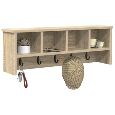 ManoManoGeneral description This wall-mounted coat rack combines style and practicality, making it an excellent choice for any hallway. Its rectangular shape and modern design provide essential storage options while maintaining a clean and contemporary look. The wall-mounted feature helps keep your entryway tidy, making it ideal for busy families and individuals seeking organization. Technical specifications Colour: Sonoma oak Material: Engineered wood Overall dimensions: 75 x 16 x 26 cm (W x D x H) Weight: 5.3 kg Frame material: Engineered wood Indoor / outdoor: Indoor only Assembly required: Yes EAN: 8721288599568 SKU: 874317 Included Components 1 x Wall-mounted coat rack Several metal hooks for hanging coats, hats, or scarves An extra shelf for bags and keys Care & Maintenance Cleaning is simple; just wipe down with a damp cloth to remove dust and fingerprints, ensuring the coat rack remains looking fresh and polished. Other information
