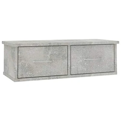 vidaXL Wall Mounted Drawer Shelf in Concrete Grey Versatile Storage Solution with 2 Drawers Made of Engineered Wood for Hallways, Bedrooms, or Living Rooms, 60x26 cm