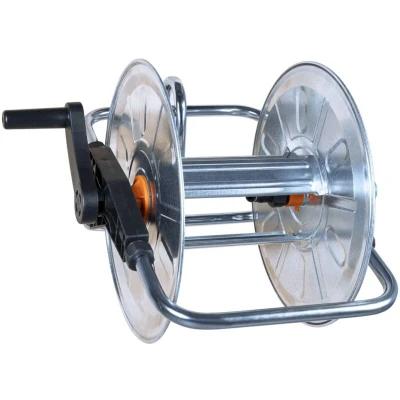 ManoManoGeneral description This wall-mounted hose reel provides a compact storage solution to keep hoses organized and effectively prevent tangling. Once mounted on the wall, the hose reel can be swiveled to the left or right, allowing you to easily water different garden areas without tangling the hose. Technical specifications Colour: Silver and black Material: Galvanized steel and plastic Dimensions: 55 x 50 x 35 cm (L x W x H) Drum diameter: 35 cm Drum width: 23 cm Size of mounting plate: 9 x 7.2 cm (L x W) Stores up to 50 m of 1/2" or 35 m of 3/4" garden hose Assembly required: Yes Other information