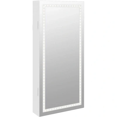 vidaXL Wall Mounted Mirror Jewellery Cabinet with LED Lights Engineered Wood Construction, Lockable Door & Spacious Storage White