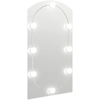 General description This mirror with LED lights adds a minimalistic aesthetic and provides bright illuminating light to any room. The integrated LED lights make it an eye-catcher or can be used as indirect lighting for ambiance. It features different colour modes to suit various situations, with warm white for a cozy atmosphere and cold white for alertness and safety. The mirror is wall-mounted, saving space in your home. Technical specifications Mirror: Material: Glass Size: 90 x 45 cm (L x W) Thickness: 0.4 cm Assembly required: Yes LED light: Light colour: Warm white and cold white Material: Plastic Diameter: 4.5 cm Cable length: 1.5 m Colour temperature: 3000-6000K Voltage: 5 V Delivery contains: 1 x Mirror 8 x LED light bulbs 1 x Cable Other information This product is powered by DC 5V, but the certified 5V USB power source is not included. Higher voltage may cause overheating and damage to the device, posing a risk of fire.