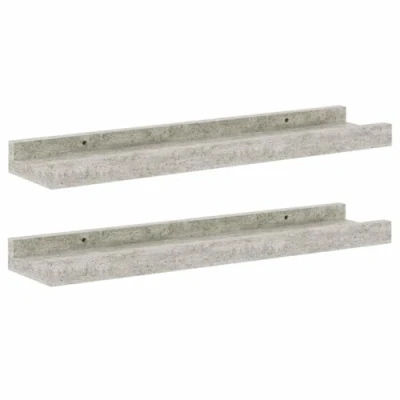 vidaXL Wall Mounted Shelves in Concrete Grey, Durable MDF Material, Ideal for Displaying Various Items, Easy to Clean, 2 Pieces Set