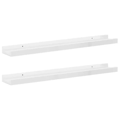 vidaXL Wall Mounted Shelves, Set of 2, High Gloss White Finish, Versatile Display Storage Solution, Easy Assembly, Durable MDF Ideal for Living Room, Bedroom, Office