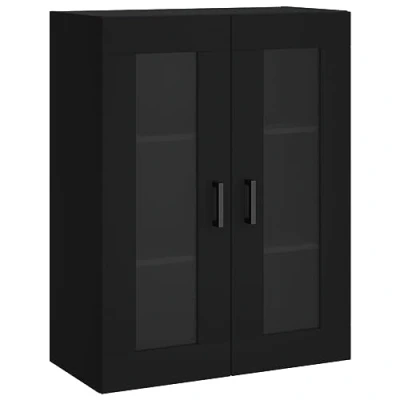 ManoManoGeneral description This wall-mounted cabinet features an elegant design, making it a timeless addition to your interior decor. It is constructed from high-quality engineered wood, ensuring durability and stability while resisting moisture. The cabinet provides ample storage space for organizing daily essentials, and its wall-mounted function saves floor space. Technical specifications Colour: Black Material: Engineered wood, glass Dimensions: 69.5 x 34 x 90 cm (W x D x H) Assembly required: Yes Installation Screws and plugs for wall mounting are not included; it is advised to use screws and plugs suitable for your specific wall type. Consult a professional if unsure about installation. Follow the provided instructions carefully during assembly. Usage The cabinet features a glass door that allows visibility of your belongings while protecting them from dust. The handles facilitate easy access to the contents inside. Other information