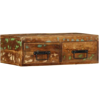 ManoManoGeneral description This wall-mounted TV cabinet is the perfect solution for your living space to maximize space and keep the floor areas uncluttered. Made from solid reclaimed wood, it features a unique look with signs of wear and visible grain structure, giving each piece its own history. Technical specifications Material: Solid reclaimed wood Dimensions: 60 x 30 x 19 cm (W x D x H) Max. weight capacity (total): 60 kg Colour: Multicolour Assembly required: Yes Usage Ample storage space for magazines, books, DVDs, and multimedia devices. Easy to clean with a damp cloth. Wall-mounted design to save floor space and keep the area tidy. Other information