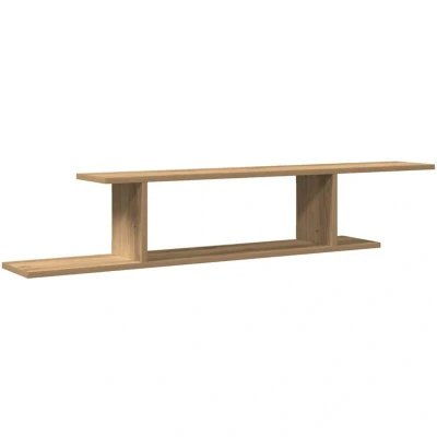 ManoManoGeneral description This stylish, practical, and elegant wall-mounted TV shelf is an eye-catching addition to your home. It is designed to be stable and durable, making it a reliable choice for various uses. Technical specifications Colour: Artisan oak Material: Engineered wood Dimensions: 125 x 18 x 23 cm (L x W x H) Maximum weight capacity (total): 40 kg Assembly required: Yes Compatibility and accessories Screws and plugs for inside the wall are not included. It is advised to find and use screws and plugs suitable specifically for your walls. Installation Please read and follow each step of the instructions carefully. If you're not sure about the installation, you can consult with a professional. Usage This hanging wall shelf is suitable for placing DVD players, CD, AV components, game systems, books, magazines, or other decorative items. The wall-mounted design saves valuable floor space. The upper and lower shelves feature an asymmetrical design and can be installed in opposite
