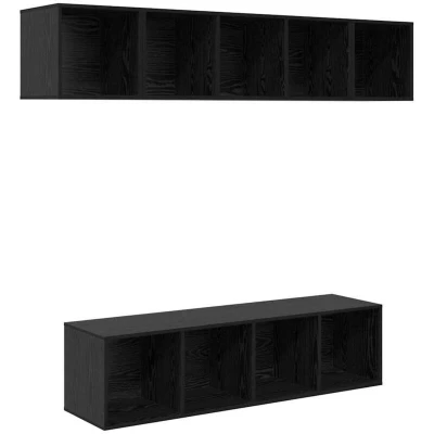 vidaXL Wall mounted with Storage 4 pcs Black oak 37 x 142.5 cm Engineered wood