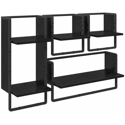 vidaXL Wall Shelf Set 4 pcs Black Oak 65 x 25 30 cm Engineered Wood
