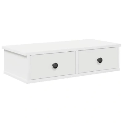 vidaXL wall shelf with drawers white 60x25x15 cm engineered wood space saving floating storage solution for living room/bedroom
