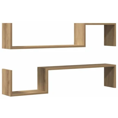 ManoManoGeneral description Do you need more storage options but don't have any spare space? These wall shelves are the perfect solution. Made from engineered wood, they are stable, durable, and resistant to moisture, warping, and splitting. The multifunctional design allows you to use them for decorating and storing items in various rooms, such as the living room, office, or study. You can display collections, books, photo frames, models, or CDs, and arrange the shelves in different styles to suit your preferences. Technical specifications Colour: Artisan oak Material: Engineered wood Dimensions: 100 x 15 x 20 cm (L x W x H) Maximum weight capacity (per shelf): 20 kg Assembly required: Yes Delivery contains: 2 x Wall shelf Installation Screws and plugs for inside the wall are not included. It is advised to find and use screws and plugs suitable specifically for your walls. If you're not sure, you can consult with a professional. Please read and follow each step of the instructions. Other
