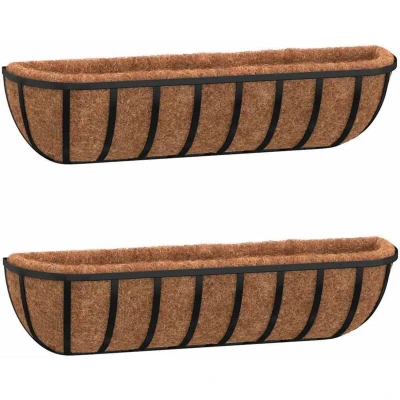 vidaXL Wall Troughs 2 pcs with Coco Liners Black 61x19x16 cm Steel