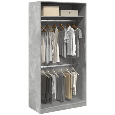 ManoManoGeneral description Clean up your clothes and easily pick out your outfit with this stylish wardrobe. The engineered wood construction ensures durability and stability, making it a perfect addition to any room. Technical specifications Colour: Concrete grey Material: Engineered wood Dimensions: 100 x 50 x 200 cm (W x D x H) Assembly required: Yes Usage Ample storage space with 2 compartments for clothes, hats, gloves, and other essentials. Stylish and compact design suitable for small spaces. Other information Warning: To prevent tipping, this product must be used with the provided wall attachment device.