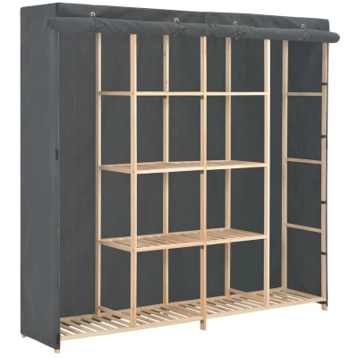 General description The vidaXL wardrobe offers a functional storage solution for your clothes, shoes, and accessories while adding a unique decorative touch to your home with its smooth and warm design. The durable wooden structure features multiple open compartments, and the fabric cover keeps your clothes hidden and protected from dust. Technical specifications Colour: Grey Material: Fabric (60% Cotton, 40% Polyester) and solid fir wood frame Dimensions: 173 x 40 x 170 cm (W x D x H) WARNING: To prevent overturning, this product must be used with the wall attachment device provided. Other information