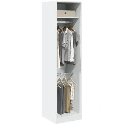 General description Clean up your clothes and easily pick out your outfit with this stylish and compact wardrobe. Made from high-quality engineered wood, it features a smooth surface, strength, stability, and resistance to moisture. The wardrobe includes 2 compartments, providing ample storage space for your clothes, hats, gloves, or other essentials. Its clean lines and minimalist design make it a perfect fit for small spaces. Technical specifications Colour: White Material: Engineered wood Dimensions: 50 x 50 x 200 cm (W x D x H) Assembly required: Yes Other information Warning: To prevent it from tipping over, this product must be used with the provided wall attachment device. SKU: 3307783