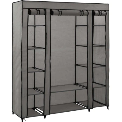 vidaXL Wardrobe with Compartments and Rods Grey 150x45x176 cm Fabric