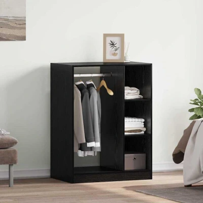ManoManoGeneral description This wardrobe is the perfect mix of style and usefulness, making it a brilliant addition to any bedroom. It slots nicely into indoor spaces with its clean lines and minimalist look that works with various décor styles. The roomy interior is ideal for organizing your clothing, accessories, or personal items. Made from engineered wood, it’s durable without sacrificing a sleek appearance, making it a must-have piece for any home that values simple design and practicality. Technical specifications Dimensions: 77 x 48 x 102 cm Colour: Black oak Material: Engineered wood Assembly required: Yes EAN: 8721288763709 SKU: 879644 Brand: vidaXL Usage Perfect for storing clothes, shoes, and personal items neatly. Designed for indoor use, making it a classy storage solution for bedrooms and closets. Easy to maintain with occasional dusting. Other information
