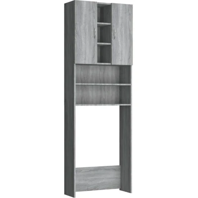 ManoManoGeneral description The washing machine cabinet in Grey Sonoma is designed to create and optimally utilize additional storage space in your bathroom or laundry room. It features a sleek design that complements any decor while providing practical storage solutions. Technical specifications Colour: Grey Sonoma Material: Engineered wood Dimensions: 64 x 25.5 x 190 cm (W x D x H) Storage: 2 doors and 9 compartments Assembly required: Yes Mounting materials included Installation Screws and plugs for wall attachment are not included; use suitable ones for your walls. Follow each step of the instruction manual carefully for proper assembly. To prevent overturning, this product must be used with the wall attachment device provided. Usage This washing machine cabinet is perfect for organizing laundry utensils, cleaning supplies, toiletries, and other items, keeping them well organized and within reach. It is easy to clean with a damp cloth. Other information