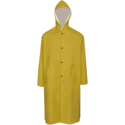 ManoManoGeneral description This heavy-duty raincoat will keep you dry in even the worst weather conditions. It is ideal for all kinds of outdoor activities, such as hiking, walking, fishing, gardening, and building jobs. Technical specifications Colour: Yellow Material: High-quality fabric with waterproof PVC coating Size: XXL With an attached hood Hidden, elasticated cuffs inside of the sleeves Zip closure and storm fly front with snaps 2 big pockets with flaps Easy storage Easy to clean Other information