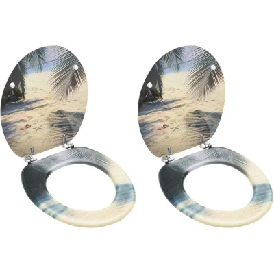 vidaXL WC Toilet Seats with Lid 2 pcs MDF Beach Design