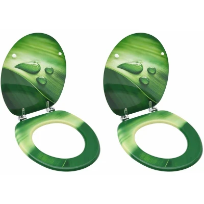 vidaXL WC Toilet Seats with Lid 2 pcs MDF Green Water Drop Design