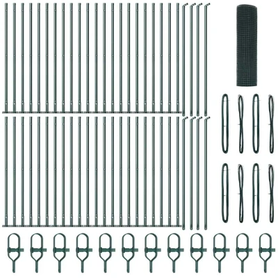 ManoManoGeneral description This Outdoor Fence Panel Set combines durability and practicality, providing a robust solution to protect and define your outdoor spaces. Ideal for gardens and terraces, it features a sleek, modern design with a powder-coated surface that withstands the elements. Made from steel and equipped with UV-resistant qualities, this fence is built to last, enhancing your home’s appeal and safety. Technical specifications Colour: Green Material: Steel Overall dimensions: 10000 x 3.2 x 40 cm (L x W x H) Assembly required: Yes EAN: 8721158276490 SKU: 3352486 Brand: vidaXL Compatibility and accessories 1 x Fence roll 44 x Post 8 x Angle post 44 x Base plate 44 x Plastic cap 132 x Plastic tension wire supporter 8 x Angle post cap 8 x Angle post hardware 12 x Tensioner 4 x 25 m Binding wire 4 x 80 m Tension wire Installation Assembly is straightforward, allowing most homeowners to easily put the fence together by following the provided instructions. Usage This fence serves as a