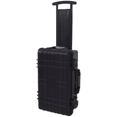 General description This wheel-equipped foam-inserted tool case is made from rugged and scratch-resistant polypropylene, ensuring it is watertight, dust-proof, and crush-proof. It features a thin foam mat at the bottom and two pieces of dense foam for maximum protection of your equipment. The case is designed for easy transport with two wheels and an adjustable telescopic handle. Its attractive black finish enhances durability for years of use. The case is lockable with two padlocks for added security (locks not included). It is an ideal solution for storing and transporting delicate electronics, audio/video equipment, microphones, cables, computers, or music accessories. Technical specifications Outer size: 56 x 35 x 23 cm Inner size: 51 x 28.5 x 19 cm Exterior material: Polypropylene + ABS Interior foam material: Polyurethane Handle: A handle + an adjustable telescopic handle for carrying Weight: 6.6 KGS Colour: Black Fabric: Polyurethane: 100% Other information