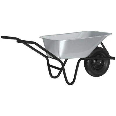 The Metal Wheelbarrow is a staple for anyone invested in maintaining their outdoor spaces with efficiency and ease. Designed specifically for the garden, it provides a classic and functional look while ensuring durability and reliability. This wheelbarrow's sturdy silver and black color scheme complements any garden style, offering both aesthetic appeal and robust design. Perfect for transporting soil, plants, and gardening tools, it is an indispensable tool for any outdoor task, catering to both professional landscapers and gardening enthusiasts alike. Steel Construction: Crafted from strong steel materials, this wheelbarrow is resistant to wear and tear, maintaining its integrity year-round. It's an excellent choice for those who prioritize longevity and resilience in their gardening tools. The steel's natural resistance to weather factors ensures it remains functional and visually appealing over time, requiring minimal maintenance. Efficient Load Capacity: Designed for heavy-duty tasks, this wheelbarrow can easily carry substantial weight, making it suitable for various gardening activities. Whether hauling soil or transporting large plants, its robust frame ensures it performs without falter, handling demanding jobs with ease while saving time and effort. Weather Resistant Features: Specially constructed to withstand diverse outdoor conditions, this wheelbarrow is weather-resistant, allowing for year-round use. Whether dealing with sun exposure or rainfall, this feature guarantees it stays in prime condition, making it a reliable gardening tool across all seasons. Enhanced Comfort During Use: Equip yourself with a wheelbarrow designed to alleviate the physical strain of gardening tasks. The ergonomic construction ensures easier handling and control, facilitating a smoother transport experience, especially during extended periods of use. Assembly Requirements: This product comes with comprehensive instructions requiring a spanner for assembly, necessitating two people to set it up efficiently. Spending the initial time on proper setup ensures maximum functionality and safety during future operations, setting you on the path to efficient gardening.