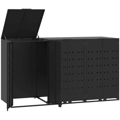 vidaXL Wheelie Bin Storage for 3 Bins Black 207x79x117 cm Steel
