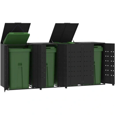vidaXL Wheelie Bin Storage for 4 Bins Black 276x79x117 cm Steel