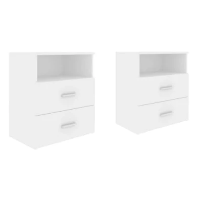 vidaXL White Bed Cabinets Set of 2 Modern Bedroom Nightstand with Drawers Durable Engineered Wood Construction Compact and Space Saving Design