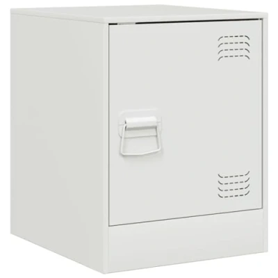 vidaXL White Bedside Cabinet Cold Rolled Steel Nightstand with Storage, Modern Bedroom Side Table Metal Handle, 34.5x39x44 cm