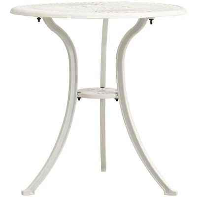 General description Enjoy a lovely afternoon tea or a cup of coffee outdoors with this elegant garden table. Made of durable cast aluminium, it is stable and sturdy, making it ideal for daily outdoor use. The tabletop features beautiful patterns, perfect for placing drinks, food, and other essentials. With three separate legs, this table ensures a reliable user experience and stability. Additionally, it includes an umbrella hole to accommodate your umbrella, providing protection from the sun or rain. Technical specifications Colour: White Material: Cast aluminium Dimensions: 62 x 65 cm (Diameter x Height) Assembly required: Yes Other information