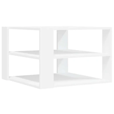 vidaXL White Coffee Table with 3 Tier Storage Square Engineered Wood for Modern Living Room Décor