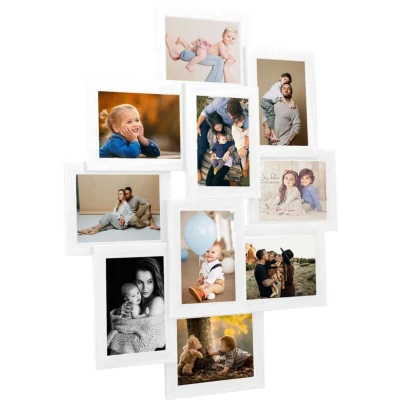 vidaXL White Collage Photo Frame 10 picture Display, Classic Design MDF with PS protection.