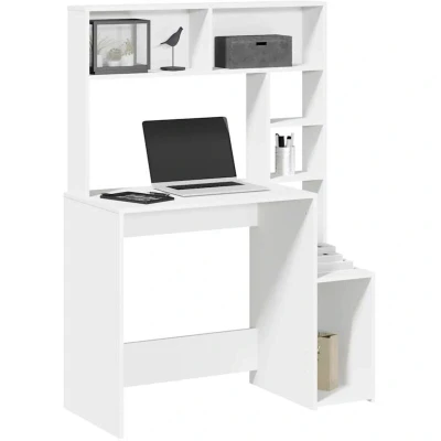 vidaXL White Desk with Shelves Modern Engineered Wood Study Table 100x45x140 cm for Office/Bedroom/Living Room