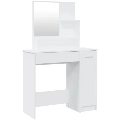 vidaXL White Dressing Table with Mirror, Premium Quality Engineered Wood, Modern Makeup Vanity Storage, Bedroom Decor