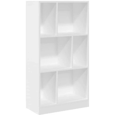 vidaXL White Engineered Wood Bookcase Bookshelf/Book Rack Storage Cabinet with 6 Compartments for Office/Bedroom/Living Room.
